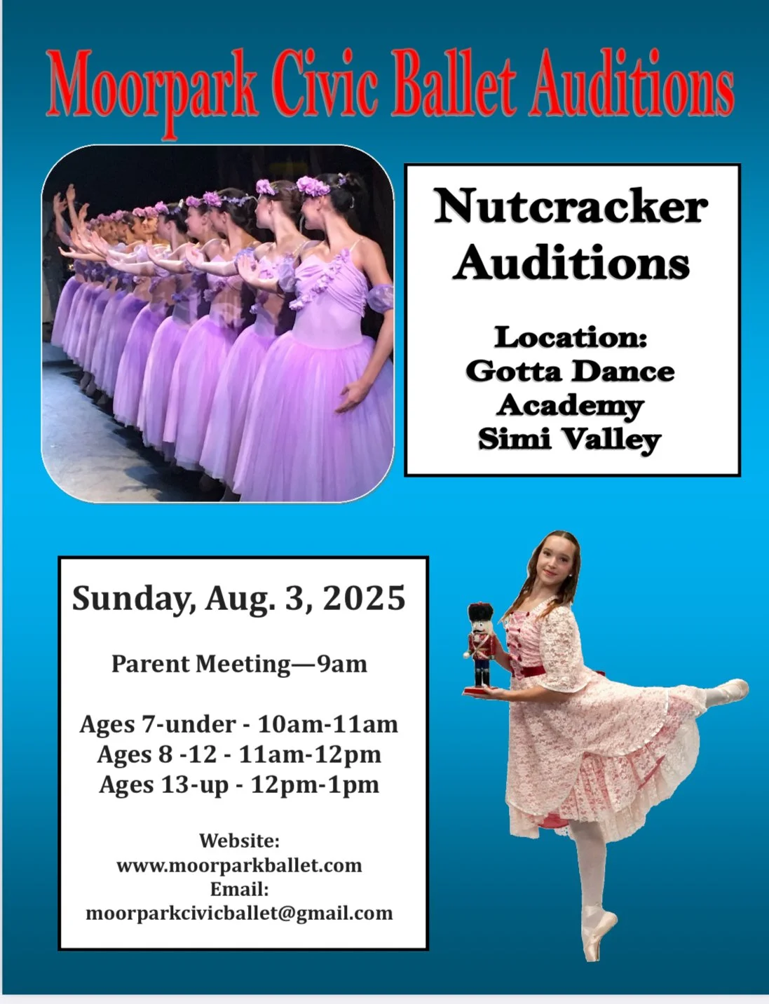 Welcome to Moorpark Civic Ballet and Dance Theatre. We provide a theatrical avenue for young dancers and professional dancers to be a part of a wonderful dance experience. Moorpark Civic Ballet was founded in 2004. Moorpark Civic Ballet and Dance Theatre is a non-profit organization 501c. All donations are tax deductible